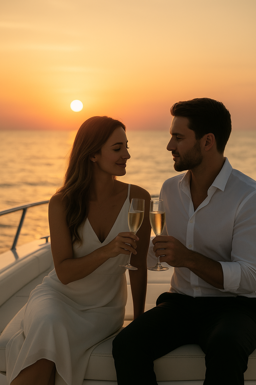 End your day aboard, as the horizon transforms into a canvas of gold and rose. Relax in the bow lounge, sip champagne and watch the sun melt into the sea. Whether you’re celebrating, unwinding or simply seeking peace on the water, this is an experience that belongs to everyone.